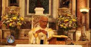 Frei Paulo celebrou com alegria o grande número de devotos que acompanharam on line a abertura do Oitavário neste domingo. “Nesses tempos que nos assombram, eu trago uma notícia de muita alegria. Nós iniciamos a Festa da Penha na sua edição de número 450. São quatro séculos e meio de devoção e piedade e a Festa da Penha teve de se reinventar. Nós chegamos aos lares das pessoas que não puderam vir à casa da Mãe de Deus Maria Santíssima. Mas a Virgem das Alegrias foi até a casa das pessoas”, disse.