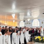 Do lado do Santo, próximo ao altar, Frei Gilson convidou a todos os jovens presentes para se dirigirem ali perto para rezar pedindo a São Luiz Gonzaga pedindo a bênção e proteção a todas as Comunidades da Paróquia.