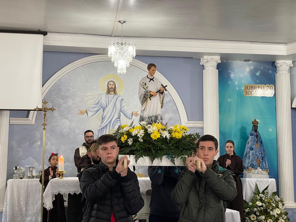 A Paróquia São Luiz Gonzaga celebrou seu padroeiro dos dias 20 a 22 de junho, em Xaxim (SC). As comemorações tiveram início com o Arraiá na sexta-feira (20) à noite e encerraram no domingo (22) com a Santa Missa festiva, na Comunidade do Bairro Alvorada, às 10h. Estiveram presentes na celebração o pároco Frei Gilson Kammer, os vigários paroquiais Frei Jacir Zolet e Frei Danilo Santos Oliveira, e Frei Jonas Ribeiro da Silva, que está a serviço da evangelização.