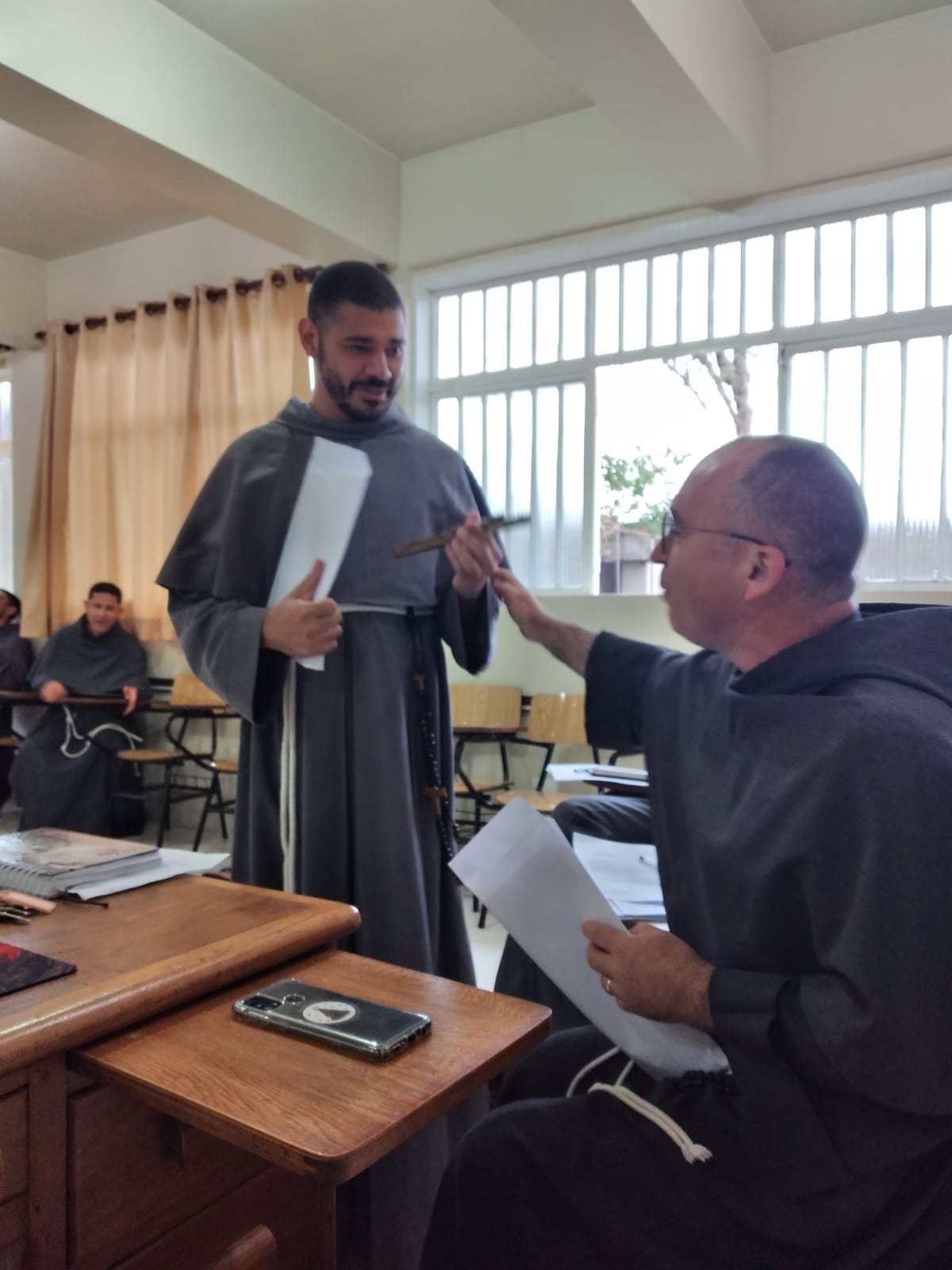 Na tarde desta quinta-feira (14/10), durante o Capítulo Conventual, os frades: Frei André Moreira Lima, OFMConv, Frei Gederson Marques Nunes, OFMConv da Província São Maximiliano Maria Kolbe; e Frei Fernando Junior, OFMConv, da Custódia Imaculada Conceição, com sede no Rio de Janeiro, receberam do guardião e formador, Frei Flávio Freitas, OFMConv, o anúncio missionário às terras amazônicas.