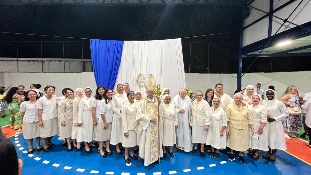Com o coração cheio de gratidão e esperança, celebramos, no dia 26 de outubro de 2025, os 100 anos do Educandário Nossa Senhora do Amparo — uma história tecida pela fé, pelo amor e pelo serviço à vida. A Santa Missa em ação de graças foi presidida por Dom José Maria, Bispo Auxiliar do Rio de Janeiro, e contou com a presença de algumas Irmãs das nossas Fraternidades mais próximas, educadores, alunos, ex-alunos, famílias, benfeitores e amigos que, ao longo de um século, ajudaram a escrever esta bela página de evangelho vivido na educação.