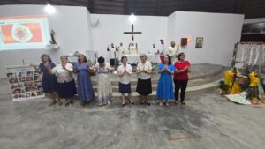Incluindo as irmãs que vieram celebrar com as comunidades, éramos as seguintes irmãs presentes: Cristina Souza, Claudia Alves do Nascimento, Francisca Francis Pereira, Fabiula Souza Silva, Geisa dos Santos, Miriam Spezia, Mayara Arguello da Silva e Angélica Libório de Castro.