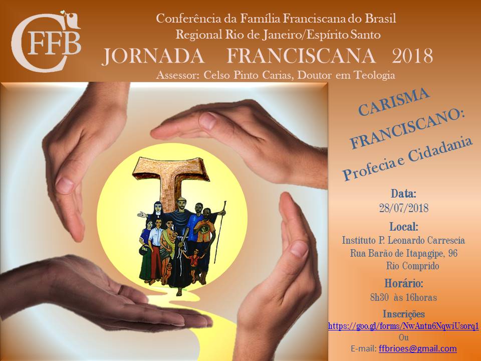 Desse modo a Conferência da Família Franciscana do Brasil, Regional Rio de Janeiro/Espírito Santo convida a todos para nossa JORNADA FRANCISCANA 2018. Queremos juntos, como família, refletir sobre o CARISMA FRANCISCANO: PROFECIA E CIDADANIA.