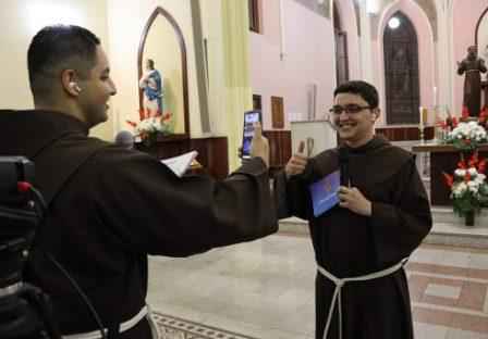 A live começou do lado de fora do Convento do Sagrado Coração de Jesus, quando os apresentadores Frei Gabriel Dellandrea e Frei Felipe Medeiros Carretta acolheram a todos os internautas com a conhecida saudação franciscana de “Paz e Bem”. Eles caminharam até o interior da Igreja do Sagrado, enquanto isso, conduziram um momento reflexivo sobre a realidade vocacional de cada um, com perguntas próprias de jovens. “Teve um jovem que há muito tempo já se fez essas perguntas”, lembrou Frei Gabriel. “Esse jovem foi Francisco de Assis”, completou Frei Felipe.