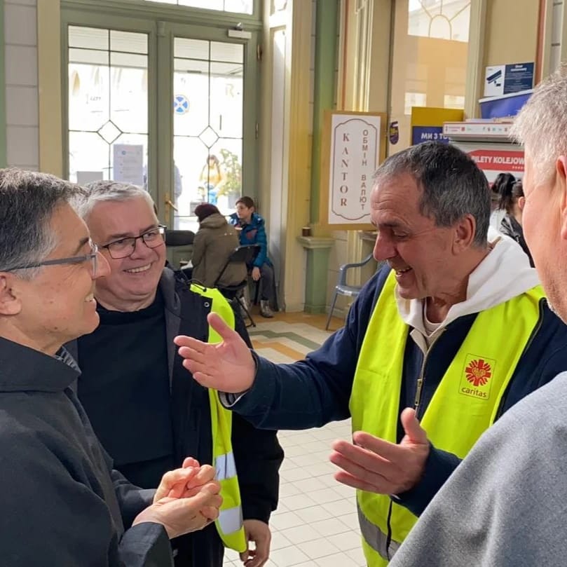 Na ocasião, o ministro geral foi ao encontro de Frei Andrzej Wanat, OFMConv, frade polonês, que trabalha diretamente na acolhida dos refugiados na estação ferroviária de Przemyśl.