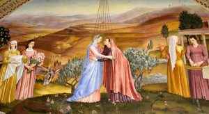 A Bíblia narra que Maria viajou para a casa da família de Zacarias logo após a anunciação do Anjo, que lhe dissera “vossa prima Isabel, também conceberá um filho em sua idade avançada. E este é agora o sexto mês dela, que foi dita estéril; nada é impossível para Deus”. (Lc 1, 26, 37). Já concebida pelo Espírito Santo, a puríssima Virgem foi levar sua ajuda e apoio à parenta genitora do precursor do Messias Salvador.