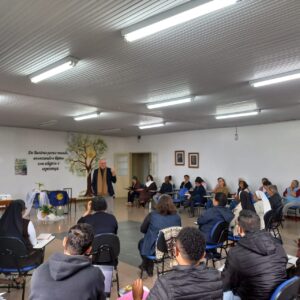 Desde o início, a reflexão indicou que escutar vai além do simples ato fisiológico de ouvir sons. Inspirado pelo mandamento bíblico “Ouve, Israel”, o assessor destacou a escuta como um gesto de abertura e disponibilidade: um convite para deixar-se tocar, deslocar e aprender. Para ilustrar, utilizou a imagem de “experimentar novos alimentos”, mostrando que ouvir o outro demanda disposição para acolher o desconhecido e maturidade para digerir o que desafia nossas certezas.