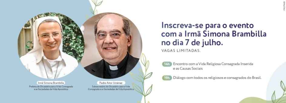 Com grande alegria e espírito de comunhão, a Conferência dos Religiosos do Brasil anuncia a participação especial da Irmã Simona Brambilla, Prefeita do Dicastério para os Institutos de Vida Consagrada e as Sociedades de Vida Apostólica, na 27ª Assembleia Geral Eletiva, que acontecerá de 07 a 11 de julho de 2025, em Brasília (DF). Como parte da programação, no dia 07 de julho, haverá uma atividade especial aberta a todas as religiosas, religiosos e todos os estilos de Vida Consagrada, com o objetivo de aproximar ainda mais a visita da Prefeita à realidade concreta dos Consagrados no Brasil.