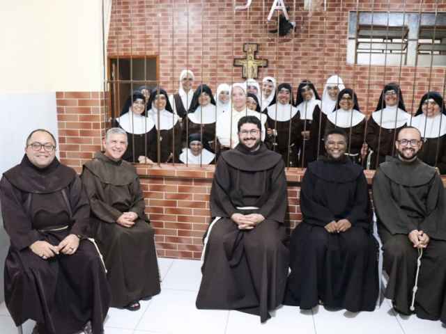 Pouco mais de 8 km separam uma tradição que se renova ao término de cada Capítulo Provincial. Após o encerramento da programação, os membros do Novo Governo Provincial se dirigiram ao Mosteiro de Santa Clara em Campina Grande para receber o cumprimento das Irmãs Clarissas daquela comunidade e pedir a benção. Santa Clara tem um papel muito importante na vida da Ordem Franciscana. Madre Letícia fez questão de lembrar da presença da mãe seráfica na vida da Ordem com a morte de Francisco. Sinal de sustento e fidelidade ao carisma originário, a Madre lembrou que assim como outrora, podem contar com o apoio delas e a comunhão de oração. Frei Rogério por sua vez agradeceu pelo carinho e pelas orações e se prontificou a estar sempre presente quando possível junto delas no cuidado e na pastoral. O encontro findou com a benção de Santa Clara dada pelas irmãs aos frades e a benção de São Francisco dada pelos frades às irmãs.
