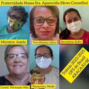 Conselho Eleito da Fraternidade Santo Antônio de Aracaju – Ministra: Cristina, Vice-ministra: Rita de Cássia, Secretária: Luizete , Tesoureira: Luzia Mendonça.