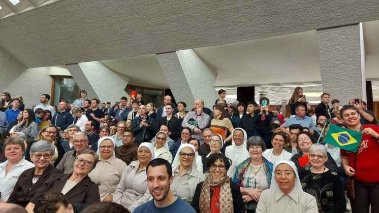 Contudo, o ponto alto foi a audiência com o Santo Papa, que nos deixou essa mensagem para língua portuguesa: “Hoje refletimos sobre a virtude de fé que é invisível, também lembramos de Maria, primeira anunciadora da fé. Ela superou as adversidades para viver essa fé. No texto do Evangelho de hoje, Jesus dormia no barco com ventos impetuosos, os discípulos estavam com medo. Nós podemos ser iguais a esses discípulos sempre medrosos e podemos ser afogados pelos nossos medos nas circunstâncias da vida. Que São José, nesse dia primeiro de maio inspire a fé e que Deus aumente a nossa fé que nela tudo comece. Deus abençoe.”