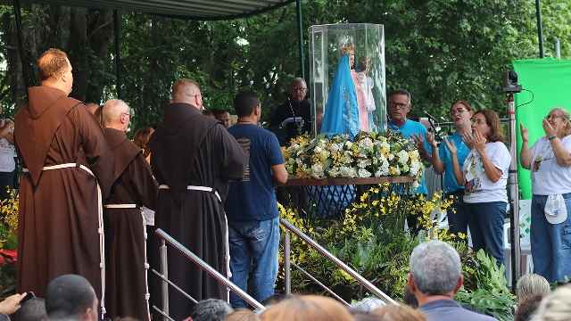 No final deste momento, um casal com uma criança se colocou perto da imagem de Nossa Senhora. “Temos um costume, muito bonito no Batismo, de consagrar às crianças a Nossa Senhora. Nesse momento, convidamos a todos a ficarem de pé e nos consagrarmos a Nossa Senhora”, pediu Frei Djalmo.