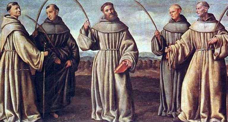 O irmão Elias de Cortona era o superior da Ordem, em 1227, quando os sete franciscanos viajaram da Itália para a Espanha, desejosos de transferirem-se para o Marrocos, na África, onde pretendiam converter os muçulmanos. Era um período de grande entusiasmo missionário nas jovens ordens franciscanas, fortalecidas pela memória de são Francisco, que morrera no ano anterior.