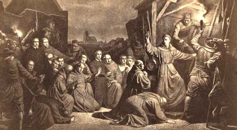 Após serem torturados na prisão de Gorcum entre 26 de junho e 6 de julho foram trasladados a Brielle. No dia seguinte, Guilherme II de la Marck, líder dos mendigos do mar, ordenou o interrogatório do grupo.