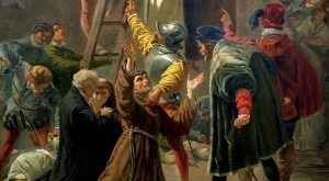 Na época da rebelião de Lutero e Calvino diversos católicos do norte da Europa se afastaram da Igreja, ocorrendo muitas rebeliões e conflitos. Após assumirem o poder na Holanda os calvinistas passaram a perseguir duramente os católicos. Durante a ocupação da cidade de Gorcum, no ano de 1572, todos os irmãos franciscanos foram presos, juntamente com outros sacerdotes, humilhados e ridicularizados. Foram conduzidos através de cidades e povoados sendo expostos publicamente a todo tipo de ridicularização por parte das pessoas inimigas do catolicismo.