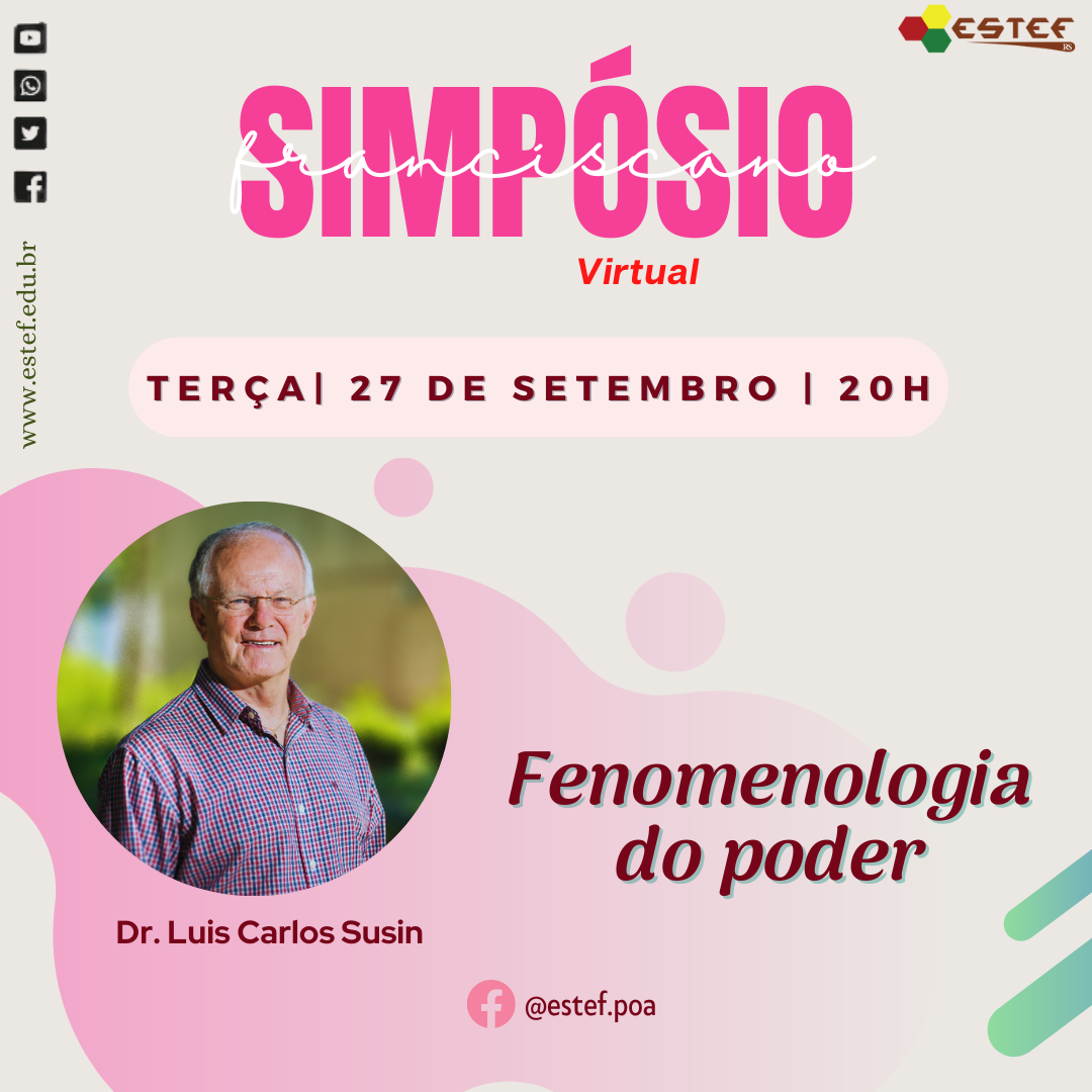 Com o tema ” o exercício do poder na ótica de Francisco de Assis e do movimento franciscano”, convidamos para o SIMPÓSIO FRANCISCANO promovido pela ESTEF. Algumas atividades serão virtuais e outras presencial. Dos dias 27 a 30 de setembro de 2022.
