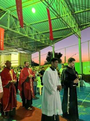 Os fiéis das comunidades do Setor Urbano e Rural lotaram o espaço celebrativo que foi preparado em uma quadra, para assim ser possível comportar todas as pessoas.