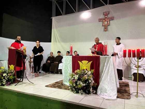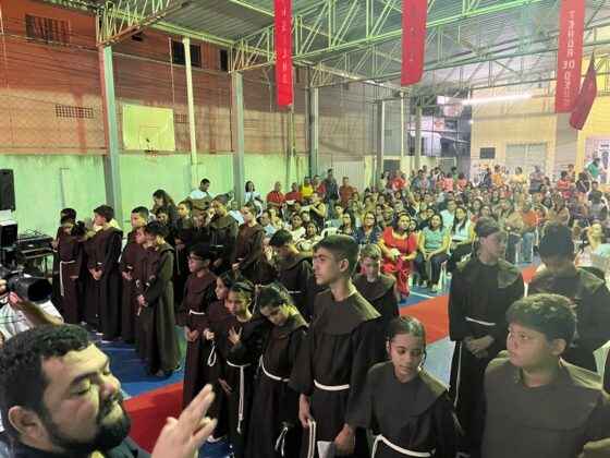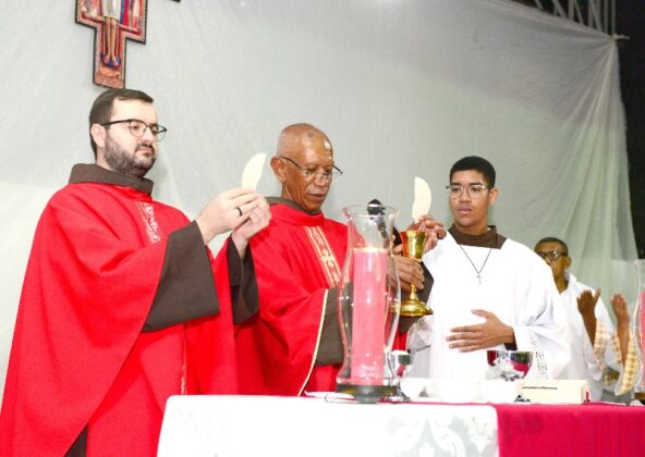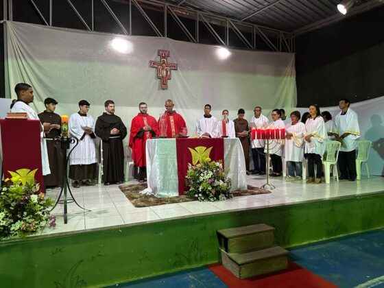 No último domingo (19/05) dia em que a Igreja celebrou com festa a Solenidade de Pentecostes, aproximadamente 50 novos coroinhas foram instituídos para o serviço do altar na Paróquia Santa Clara de Assis de Colatina (ES). A Celebração Eucarística foi realizada no Centro de Acolhida da Caritas, pertencente a Diocese de Colatina e foi presidida pelo pároco, Frei Pedro de Oliveira Rodrigues e concelebrada pelo Vigário Paroquial, Frei Augusto Luiz Gabriel.