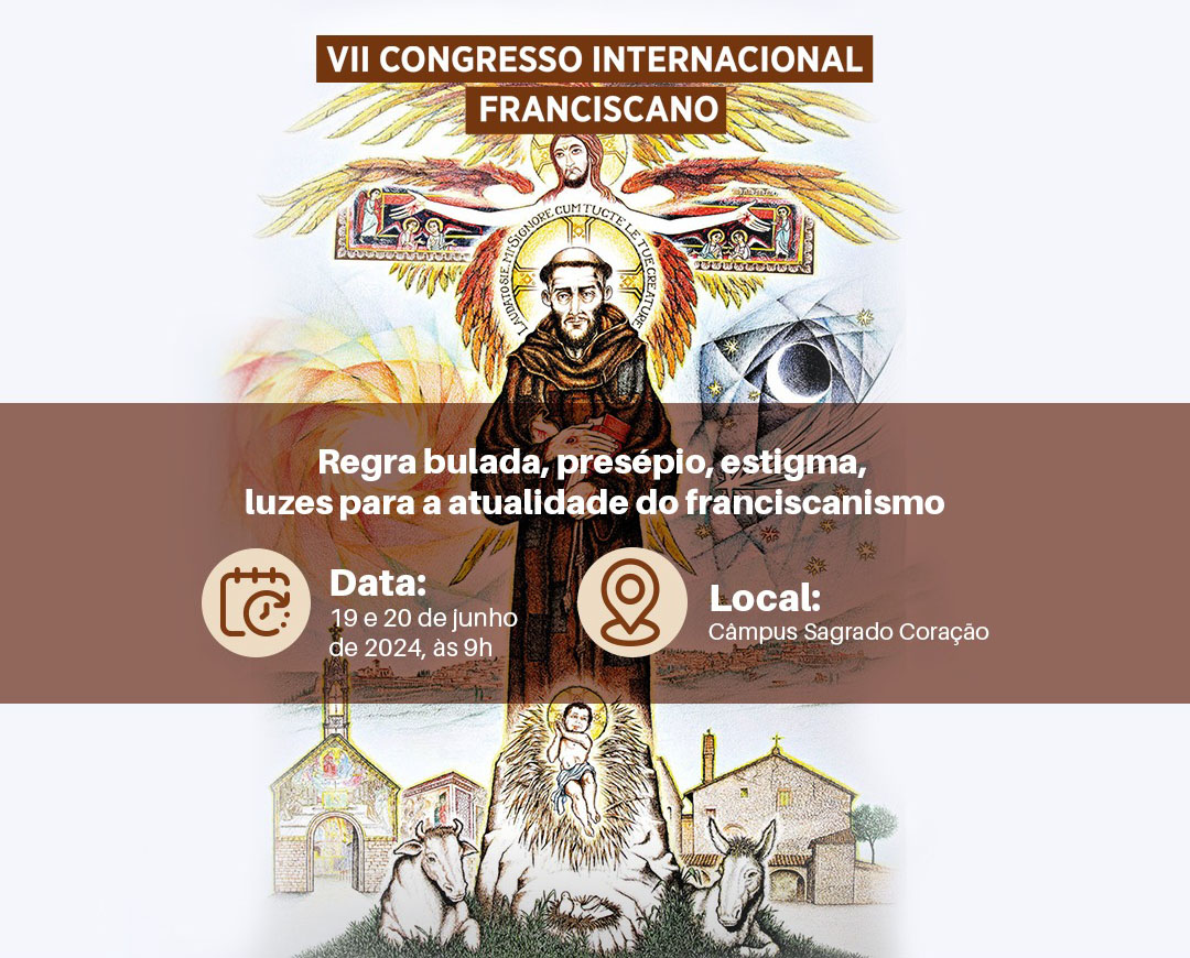 Ocorre nos dias 19 e 20 de junho, na Universidade São Francisco (USF), o VII Congresso Internacional Franciscano, no Câmpus Sagrado Coração, em Campinas. Nesta edição, a temática do Congresso será “Regra Bulada, Presépio, Estigma: Luzes para a atualidade do franciscanismo”. O formato do evento será presencial com momentos on-line. Clique aqui e confira a programação.